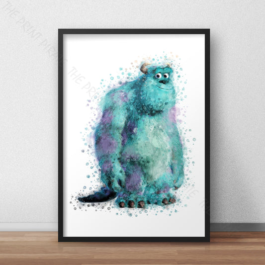Disney Pixar 'SULLY' Monsters INC Watercolour Splash Wall Art Print