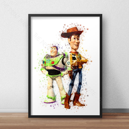 Disney Pixar 'WOODY AND BUZZ' Toy Story Watercolour Splash Wall Art Print