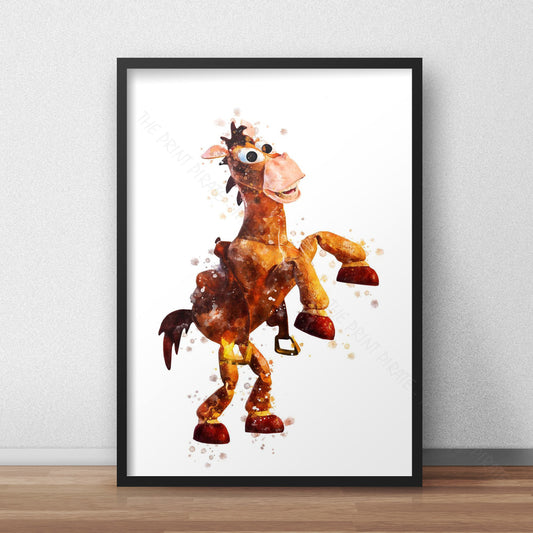 Disney Pixar 'BULLSEYE THE HORSE' Toy Story Watercolour Splash Wall Art Print