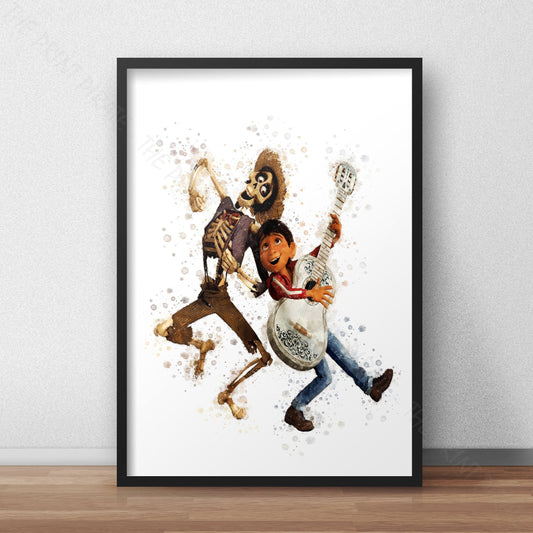 Disney Pixar 'HECTOR AND MIGUEL' Coco Watercolour Splash Wall Art Print