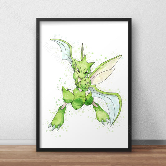 Pokemon 'SCYTHER' Watercolour Splash Wall Art Print