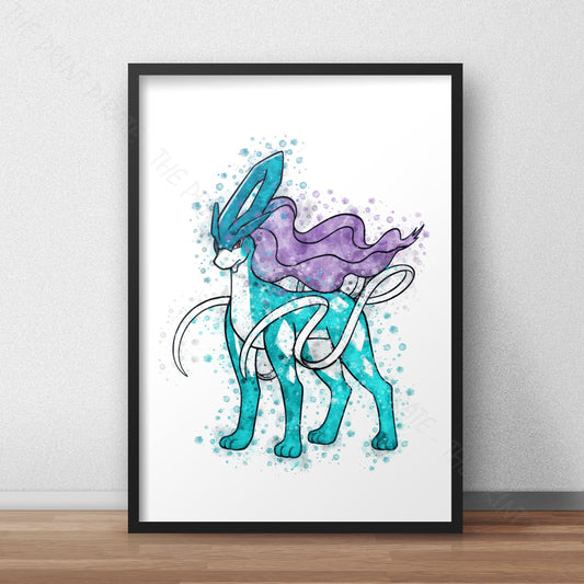 Pokemon 'SUICUNE' Watercolour Splash Wall Art Print