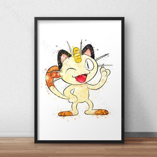 Pokemon 'MEOWTH' Watercolour Splash Wall Art Print