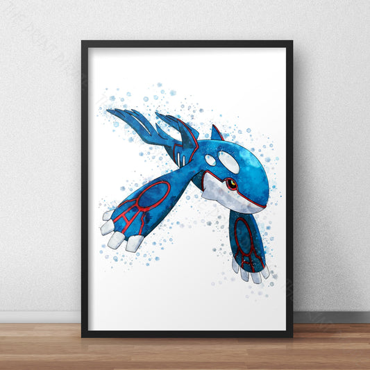 Pokemon 'KYOGRE' Watercolour Splash Wall Art Print