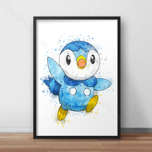 Pokemon 'PIPLUP' Watercolour Splash Wall Art Print