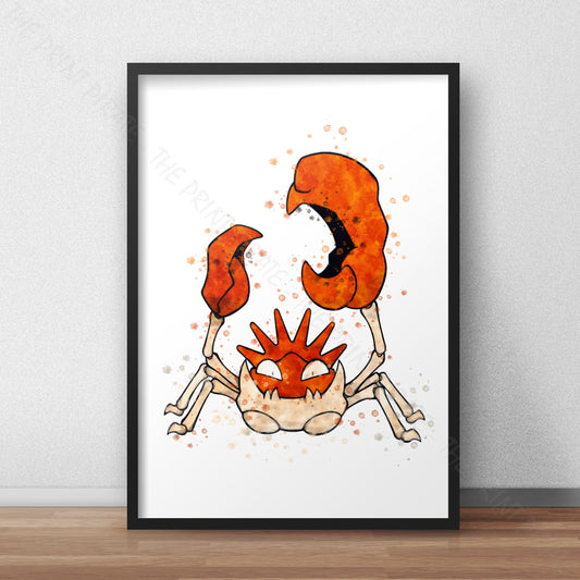 Pokemon 'KINGLER' Watercolour Splash Wall Art Print