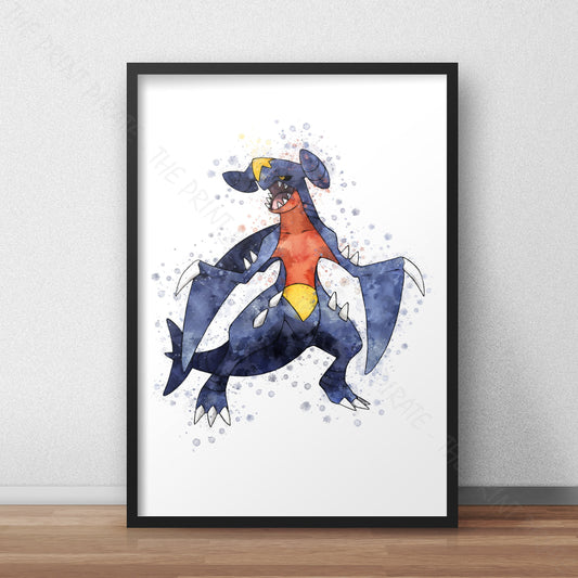 Pokemon 'GARCHOMP' Watercolour Splash Wall Art Print