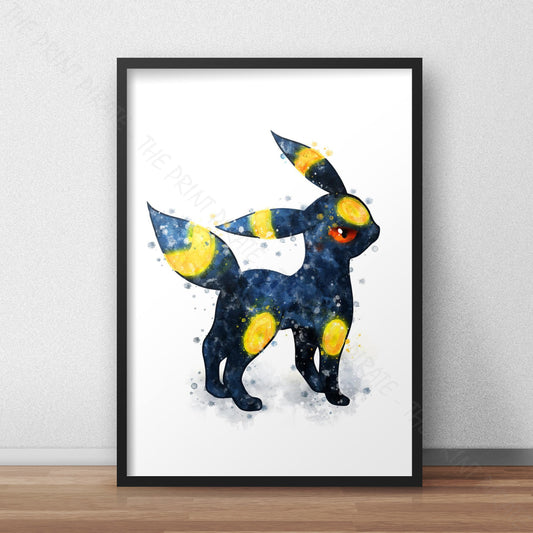 Pokemon 'UMBREON' Watercolour Splash Wall Art Print