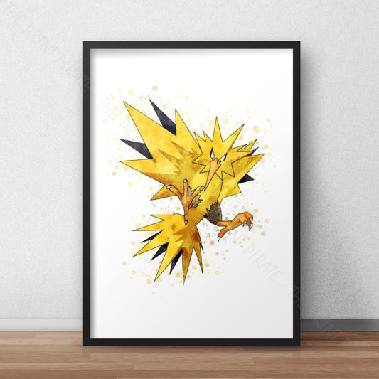 Pokemon 'ZAPDOS' Watercolour Splash Wall Art Print