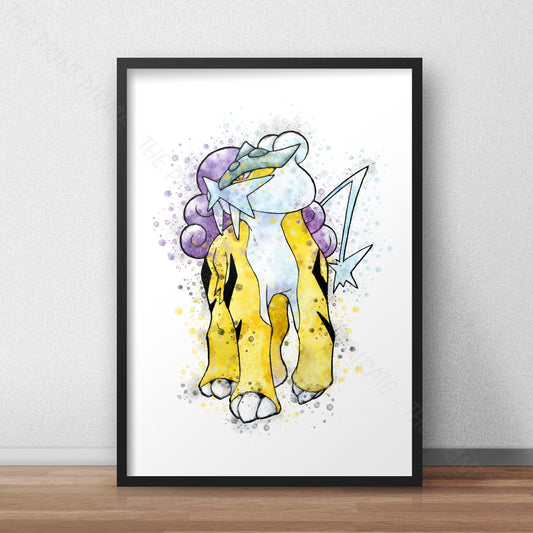 Pokemon 'RAIKOU' Watercolour Splash Wall Art Print
