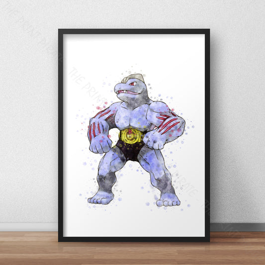Pokemon 'MACHOKE' Watercolour Splash Wall Art Print