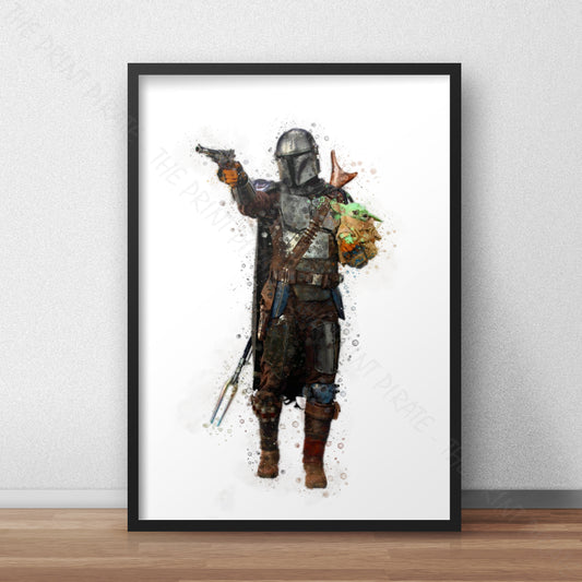 Star Wars 'MANDALORIAN AND CHILD' Watercolour Splash Wall Art Print
