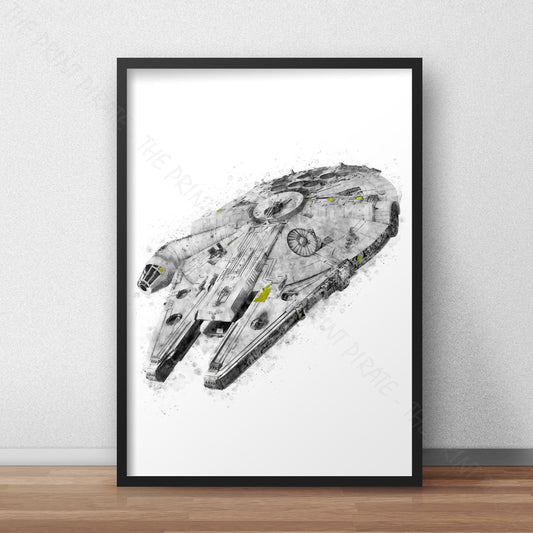 Star Wars 'MILLENNIUM FALCON' Watercolour Splash Wall Art Print