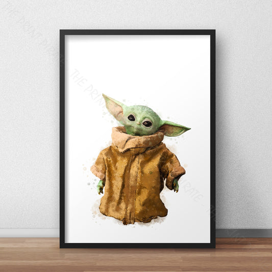 Star Wars 'BABY YODA / GROGU' Watercolour Splash Wall Art Print