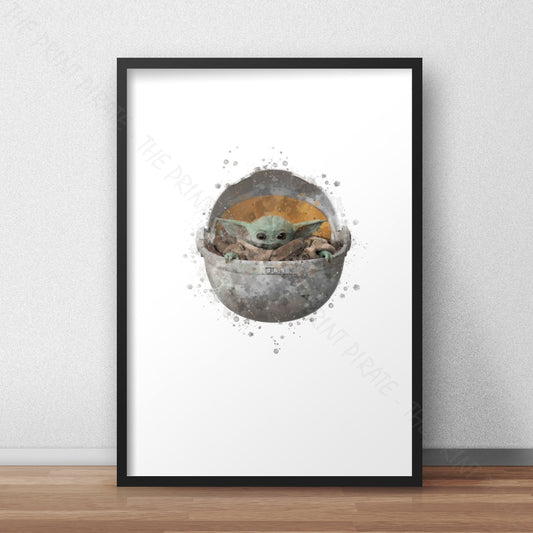 Star Wars 'BABY YODA / GROGU POD' Watercolour Splash Wall Art Print