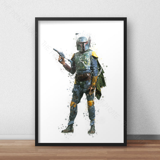 Star Wars 'BOBA FETT' Watercolour Splash Wall Art Print