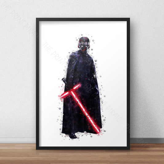 Star Wars 'KYLO REN' Watercolour Splash Wall Art Print