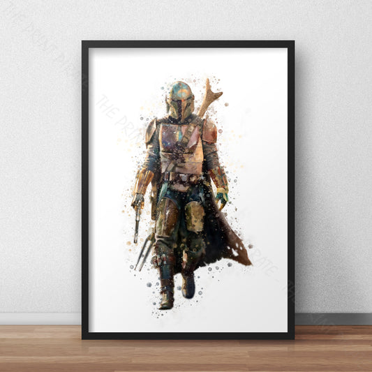 Star Wars 'THE MANDALORIAN' Watercolour Splash Wall Art Print