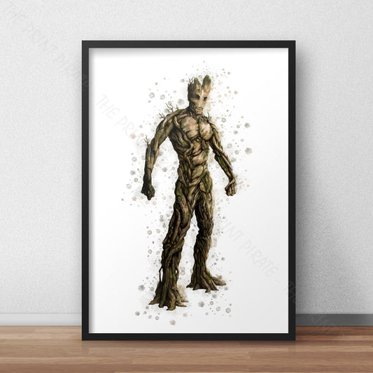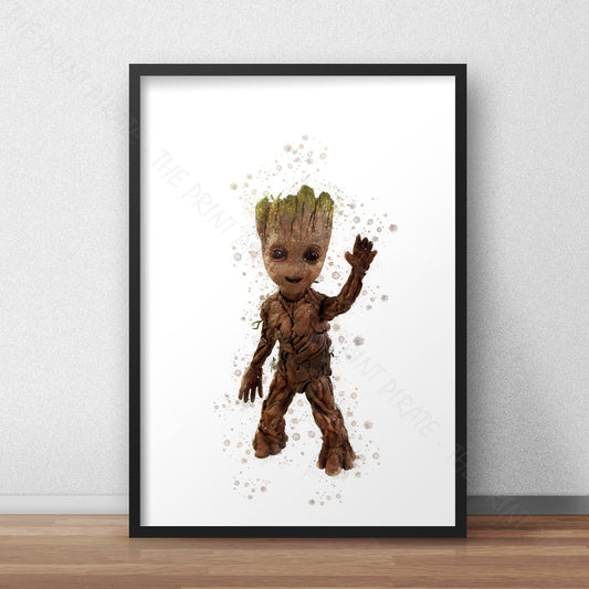 Superhero 'BABY GROOT' Marvel Watercolour Splash Wall Art Print