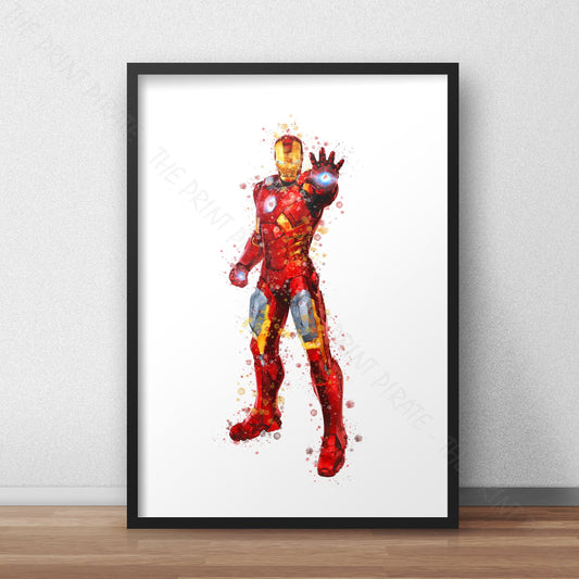 Superhero 'IRON MAN' Marvel Watercolour Splash Wall Art Print