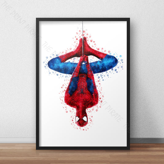 Superhero 'SPIDERMAN' Hanging (No.7) Marvel Watercolour Splash Wall Art Print