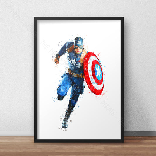 Superhero 'CAPTAIN AMERICA' Marvel Watercolour Splash Wall Art Print