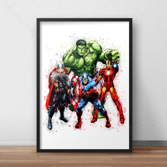 Superhero 'THE AVENGERS HEROES' Marvel Watercolour Splash Wall Art Print