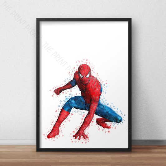 Superhero 'SPIDERMAN' (No.1) Marvel Watercolour Splash Wall Art Print