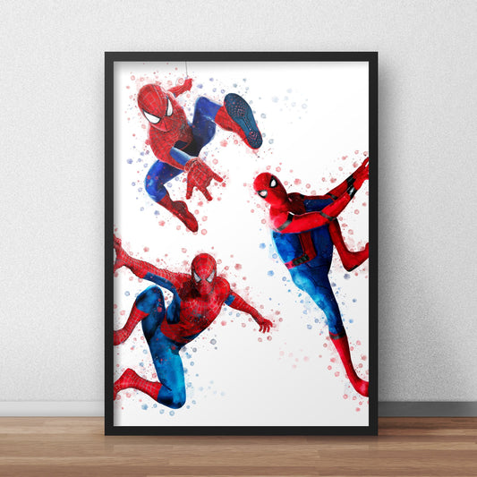 Superhero 'SPIDERMAN TRIO' Marvel Watercolour Splash Wall Art Print