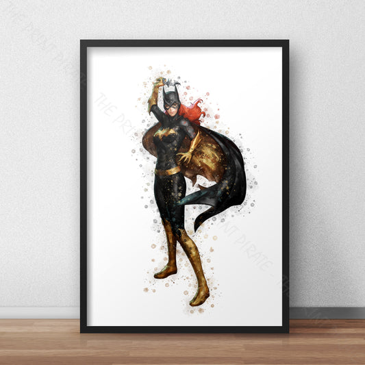 Superhero 'BATGIRL' DC Watercolour Splash Wall Art Print