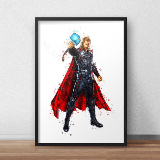 Superhero 'THOR' Marvel Watercolour Splash Wall Art Print