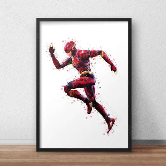 Superhero 'THE FLASH' DC Watercolour Splash Wall Art Print