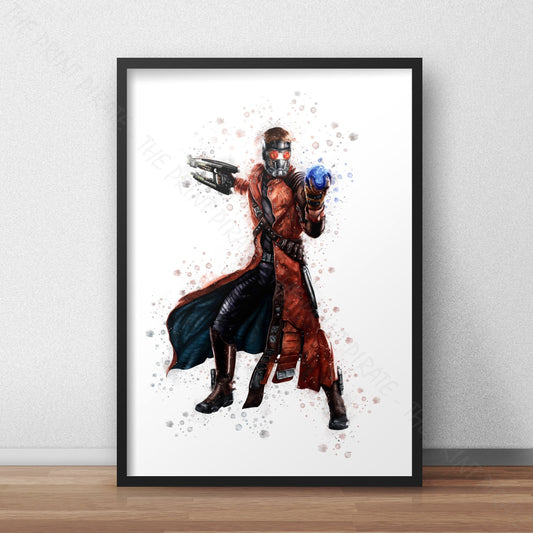 Superhero 'STAR LORD' Marvel Watercolour Splash Wall Art Print