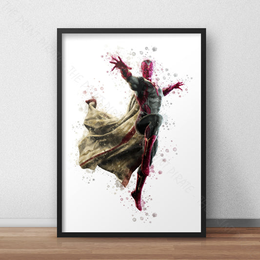 Superhero 'VISION' Marvel Watercolour Splash Wall Art Print