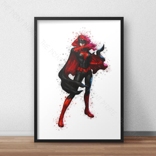 Superhero 'BATWOMAN' DC Watercolour Splash Wall Art Print