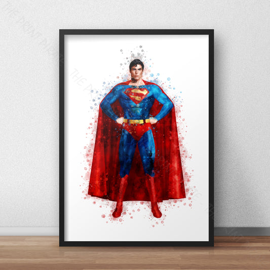 Superhero 'SUPERMAN' DC Watercolour Splash Wall Art Print