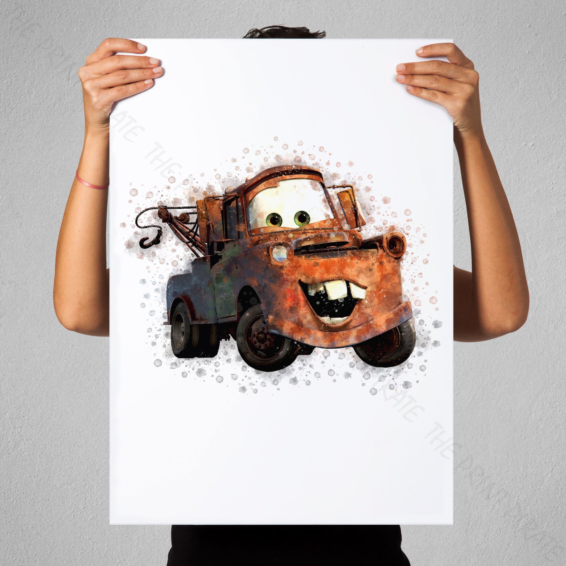Disney 'MATER' Cars Character Watercolour Splash Wall Art Print