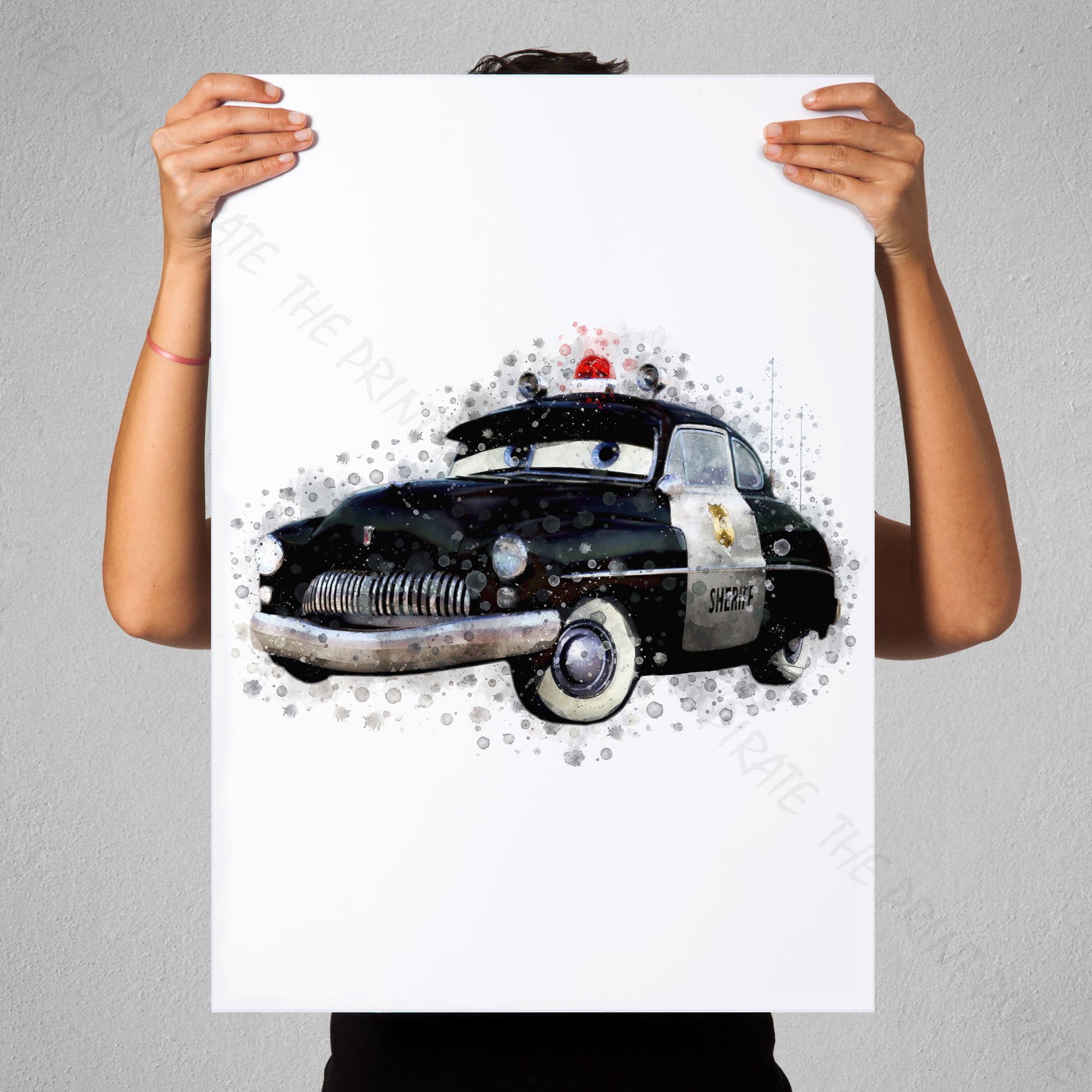 Disney 'SHERIFF' Cars Character Watercolour Splash Wall Art Print