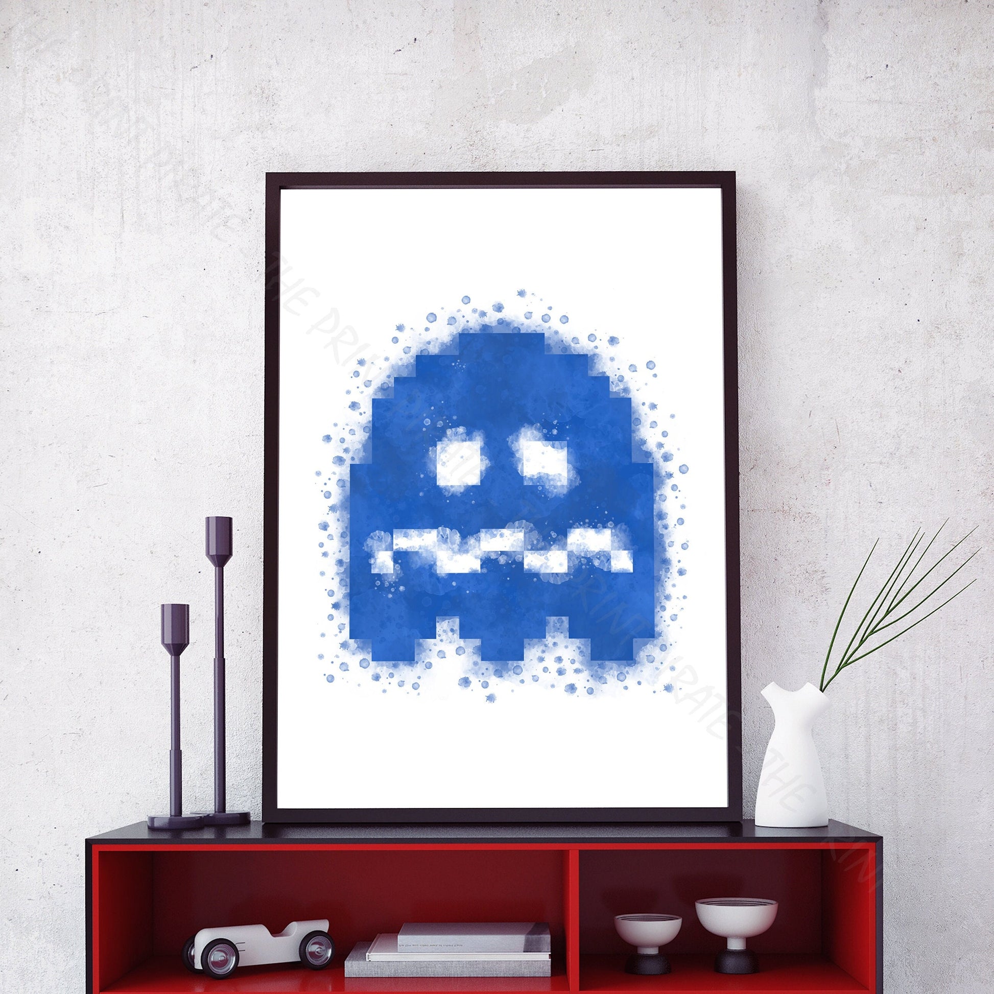 'PAC-MAN SCARED GHOST' Pixel Pacman Arcade Character Gaming Creative Poster Print.
