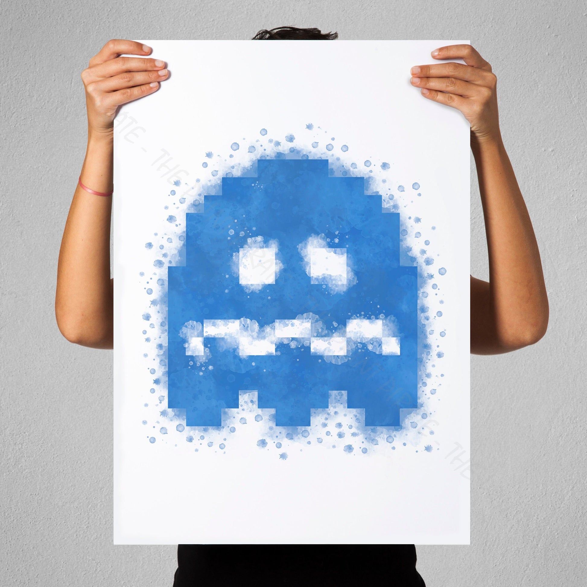 Gaming 'PACMAN SCARED GHOST' Watercolour Splash Wall Art Print