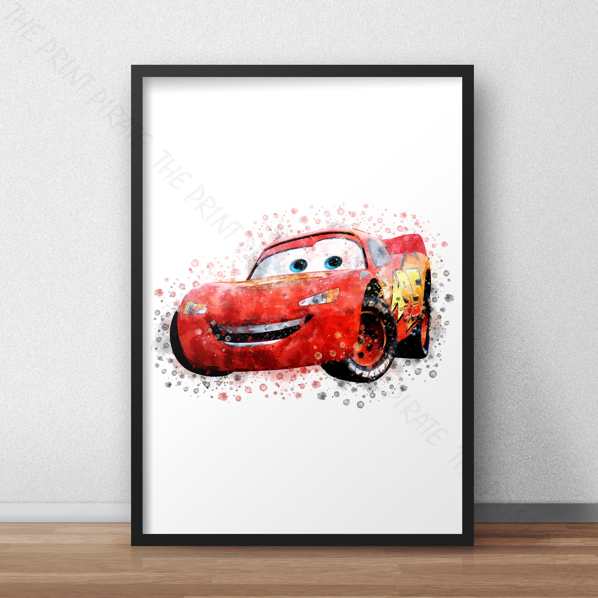 Disney 'LIGHTNING McQUEEN' Cars Character Watercolour Splash Wall Art Print