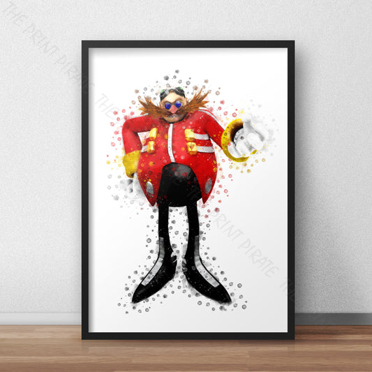 Gaming 'DR ROBOTNIK / EGGMAN' Sonic Watercolour Splash Wall Art Print