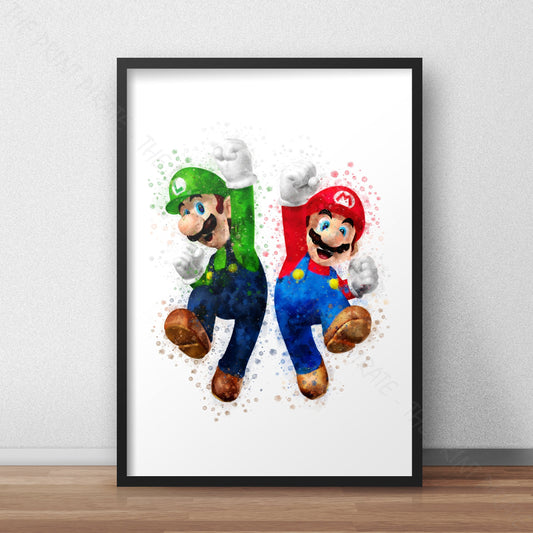 Gaming 'MARIO AND LUIGI' Mario Watercolour Splash Wall Art Print