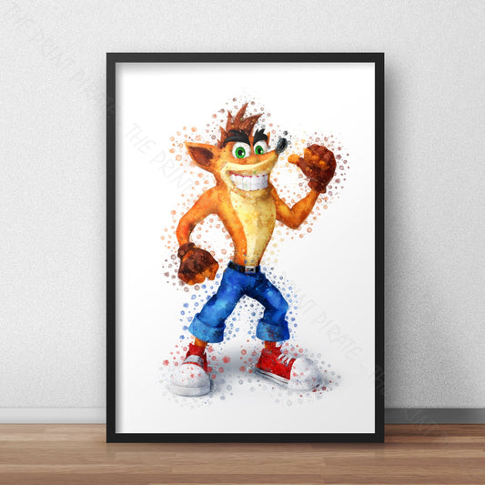 Gaming 'CRASH BANDICOOT' Watercolour Splash Wall Art Print