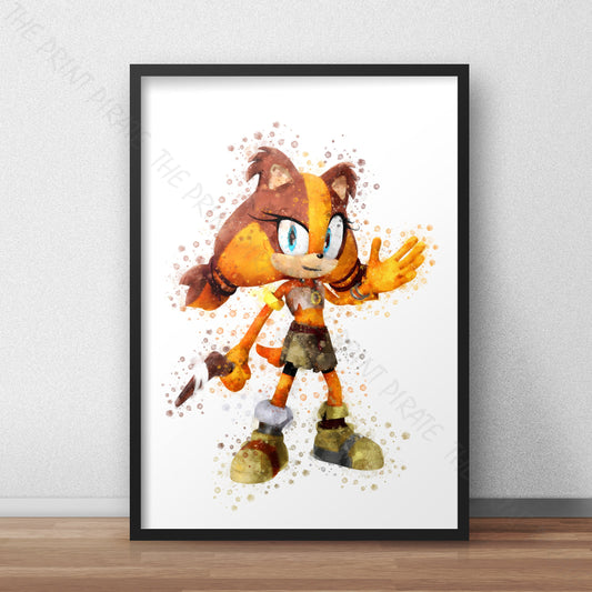 Gaming 'STICKS THE BADGER' Sonic Watercolour Splash Wall Art Print