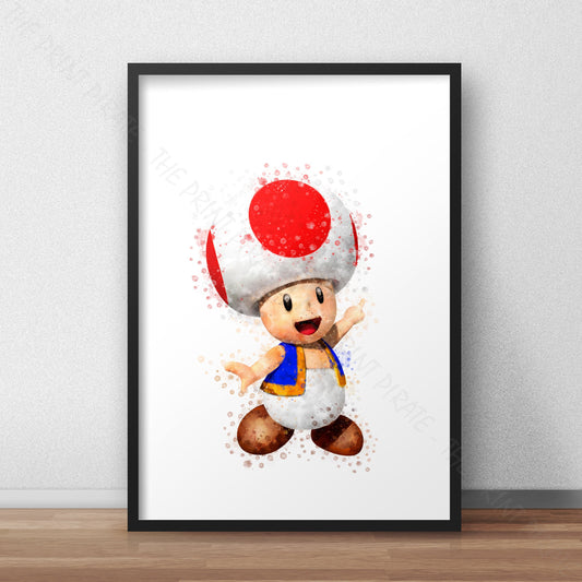Gaming 'TOAD' Mario Watercolour Splash Wall Art Print