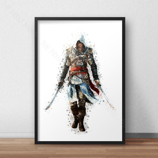 Gaming 'ASSASSIN'S CREED - EDWARD' Watercolour Splash Wall Art Print