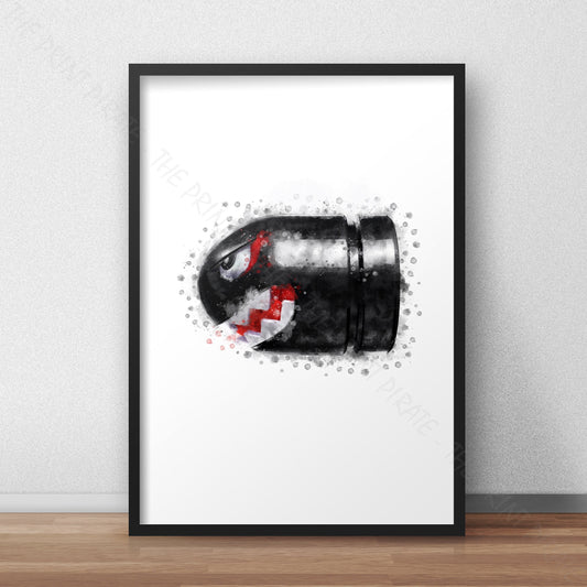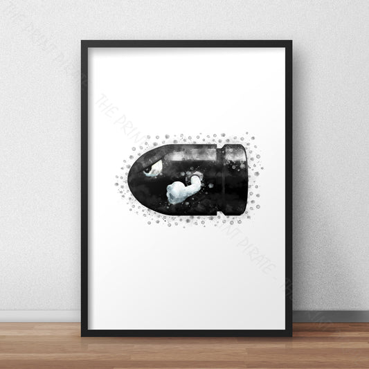 Gaming 'BULLET BILL' Mario Watercolour Splash Wall Art Print