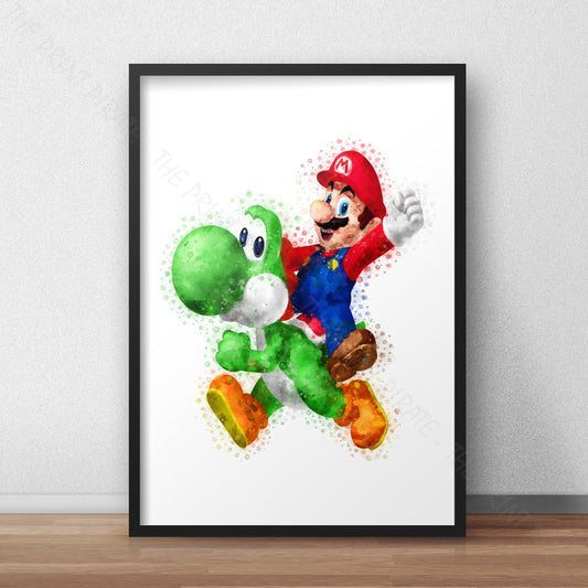 Gaming 'MARIO AND YOSHI' Mario Watercolour Splash Wall Art Print