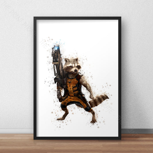 Superhero 'ROCKET RACOON' Marvel Watercolour Splash Wall Art Print